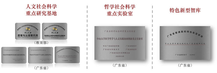 - 广东省省级研究基地:华南农村研究中心、东西哲学与文明互鉴研究中心、中国优秀传统文化普及教育研究中心