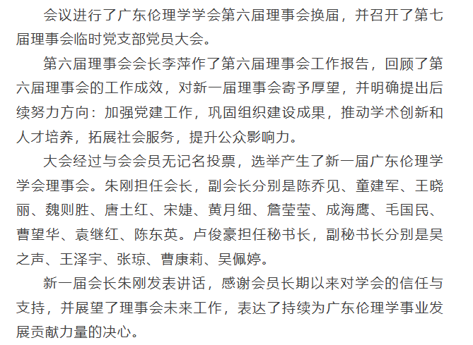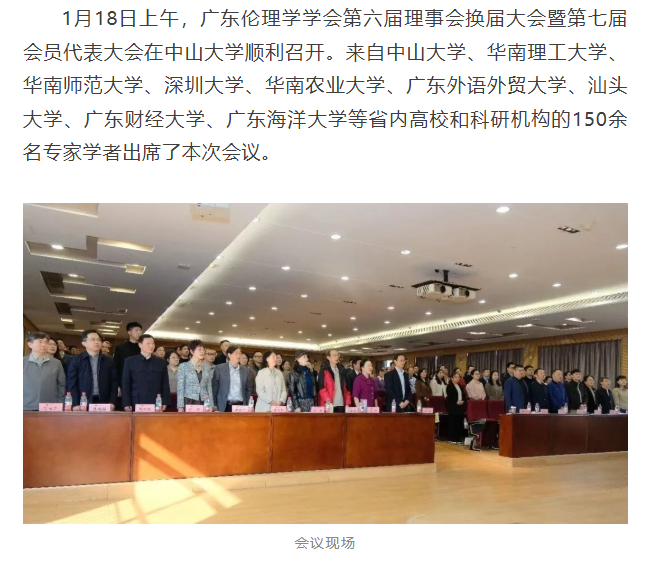 广东伦理学学会第六届理事会换届大会暨第七届会员代表大会在中山大学成功举办