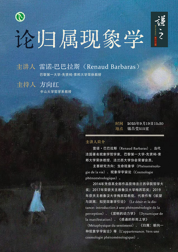 谦之名家讲坛|Renaud Barbaras(雷诺·巴巴拉斯):论归属现象学