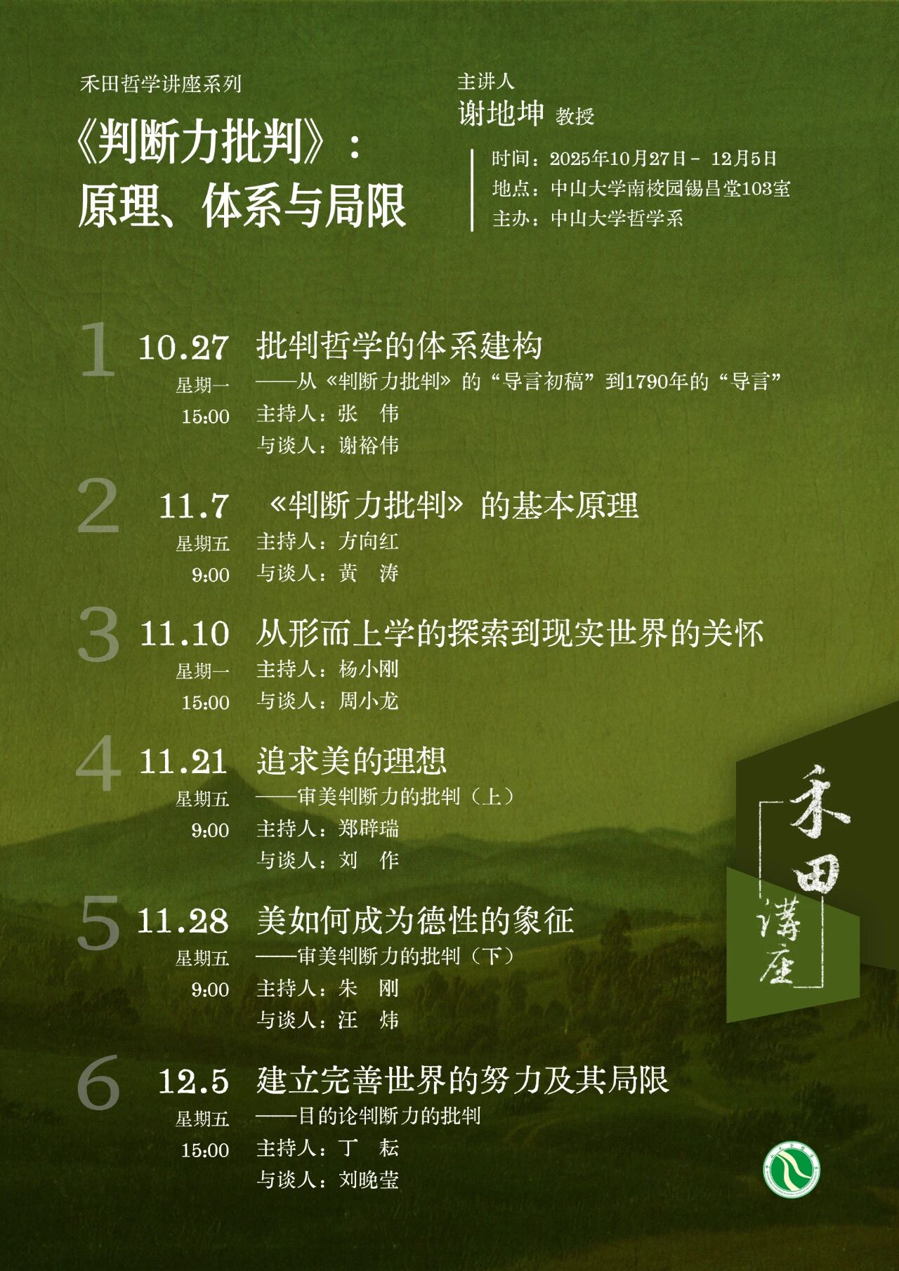 禾田哲学讲座系列预告 | 谢地坤教授《判断力批判》:原理、体系与局限